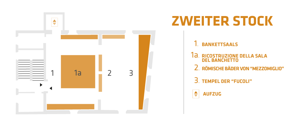 Das oberste Stockwerk des Museums beherbergt die stimmungsvolle Abteilung über das etruskische Symposium; hier wird der Besucher virtuell eingeladen, das Haus eines etruskischen Fürsten namens „Aranth“ zu besichtigen; es ist daher möglich, die lebensgetreue Rekonstruktion des Bankettsaals mit den Triklinien zu sehen, in denen die Etrusker ihre Mahlzeiten zusammen mit ihren Frauen einnahmen, was für die damaligen Sitten ein großer Skandal war; im Saal sind außerdem verschiedene rituelle Gegenstände und Alltagsgegenstände ausgestellt, die mit dem Verzehr von Speisen verbunden sind, insbesondere Fleisch und Wein, ein Getränk, das damals mit dem Kontakt zum Göttlichen assoziiert wurde. Im anderen Raum sind Fundstücke aus den Ausgrabungen einer Thermenanlage aus der augusteischen Zeit ausgestellt, in der der Dichter Horaz zur Kur mit dem Wasser von Chianciano kam. Hier befinden sich auch einige Vitrinen mit Fundstücken, die dem Museum von Bürgern gespendet wurden; ebenfalls in diesem Raum bietet eine Balustrade einen besonderen Blick auf den Giebel des Fucoli-Tempels im darunter liegenden Stockwerk.