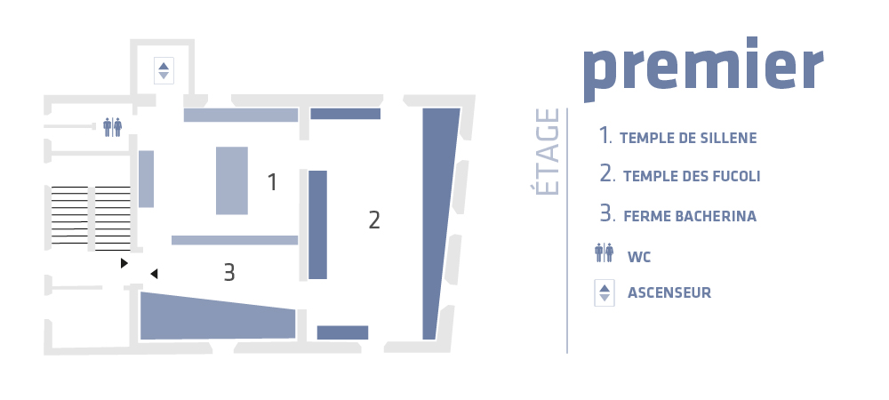 En continuant nous entrons dans le royaume du sacré et de la religion étrusque; dans la grande salle, on peut voir la reconstruction en grandeur nature d'un fronton templier étrusque où les statues et les frises trouvées près d'une source thermale encore exploitée, "I Fucoli", ont été placées.
